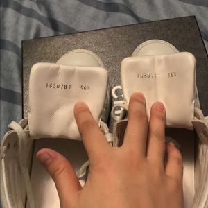 These are gently used creamy whites looking sneakers, but the box says light grey. I bought these and wore it a few times because I have wide feet and it ran tight on my feet. I have not seen these for sale before as I have been looking for a bigger size *sigh*