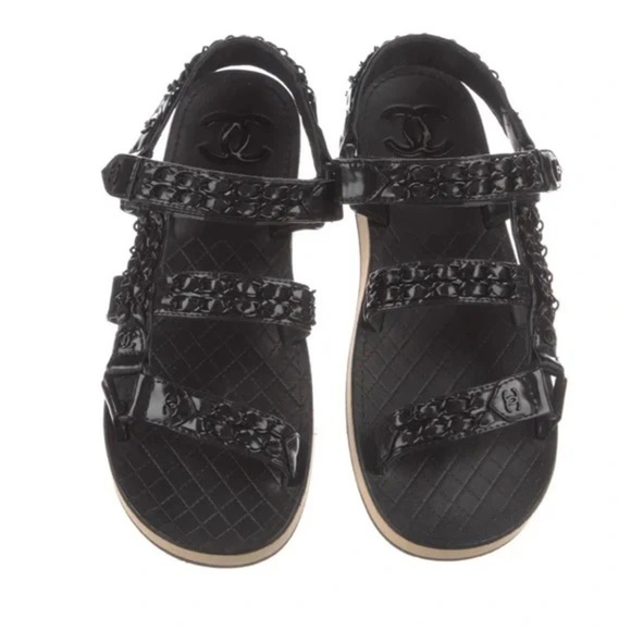 Chanel So Black Chain Link Dad Strap Sandal NWT 37