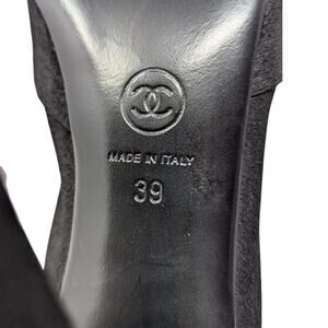 Chanel Stretch Suede High Heel Ankle Booties Black Interlocking CC Logo Gold 39