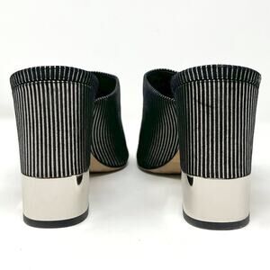 Chanel Striped Suede Peep Toe Mule Sandals with Logo Heel - Size 40.5