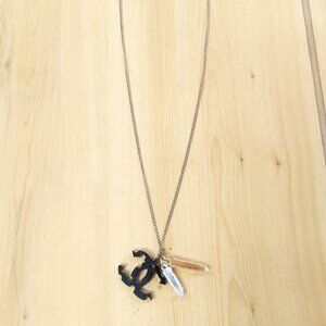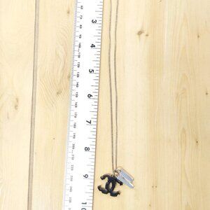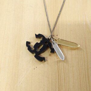 Chanel Style CC Logo Necklace Gold Silver Tone Charms Pendant Chain