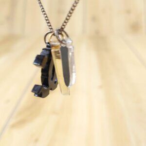 This necklace is in good, used condition. There are no major scratches, dents, or damage to the charms or chain. Minor superficial wear consistent with gentle pre-owned use may be visible upon close inspection, particularly on the metallic charms and chain links, but nothing that detracts significantly from its overall appeal. The clasp is fully functional and secure.