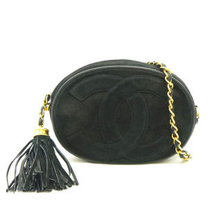 Chanel Suede Fringe Pouch Chain Bag Black