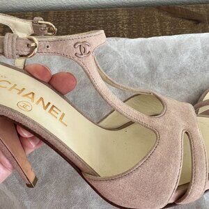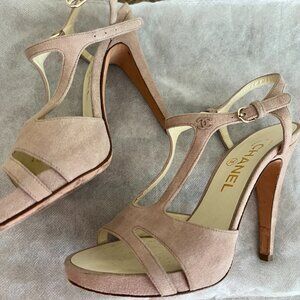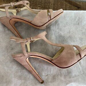 Color is like a light pink/blush. It has been worn but well taken care of. I do not see any spots on suede. Classy elegant heels for the night out. EU size 36.