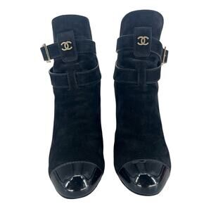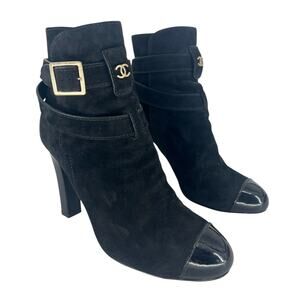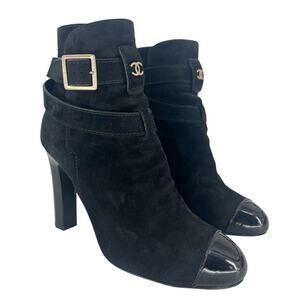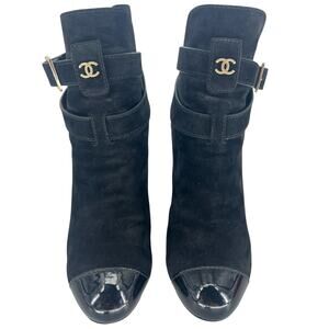 Chanel Suede & Patent Leather CC Cap Toe Ankle Boots – Black – Lagerfeld Era