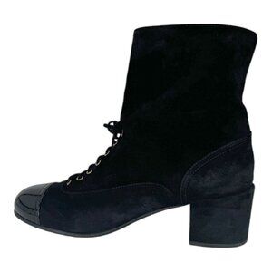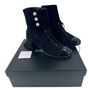 Chanel Suede Pearl CC Logo Patent Cap Toe Short Boots