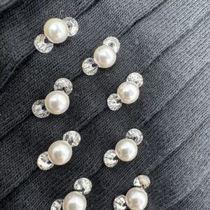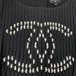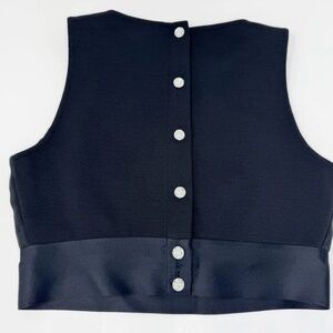 The Chanel CC Embellished Crop Top in Black Cotton is a stunning and luxurious piece that adds a touch of glamour to any ensemble. This sleeveless crop top features pleated and beaded accents, elevating its visual appeal and creating a sophisticated look. The bateau neckline adds a graceful and timeless quality to the top, while the button closure at the back offers a polished and elegant finish. This Chanel crop top in black cotton is a versatile and stylish choice for adding a touch of luxury to your outfit.