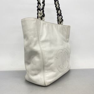 Chanel Tote Bag Lambskin White Gold Hardware Pre-owned Women's