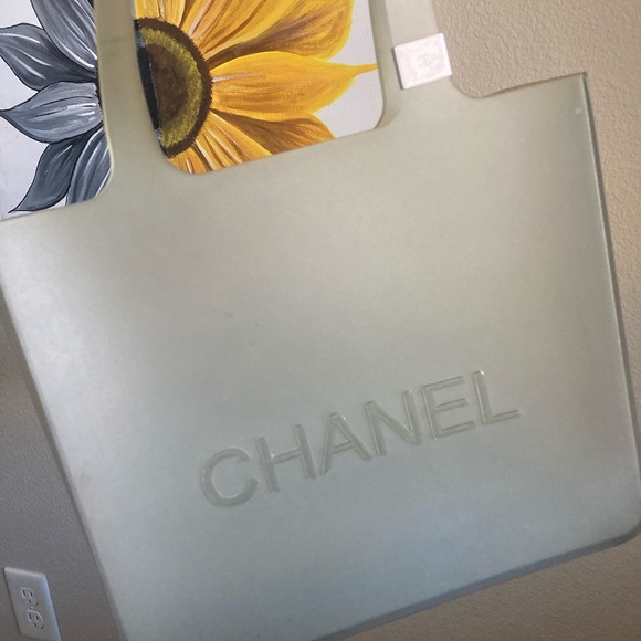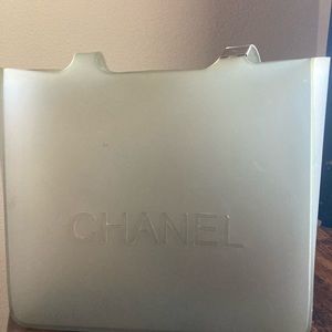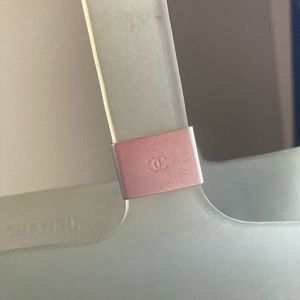 This is more of a frosted translucent finish. I put an LV Amarante colored wallet inside the bag to show. Measurements are shown in photos. It can work as a shoulder bag. Straps are just long enough for it. Some discoloration ontop of handles, but adds personality. Some specs on the inside bottom of bag. This is a beautiful vintage piece. I have bought too much from @bagriculture and need to let some pieces go.