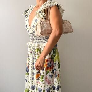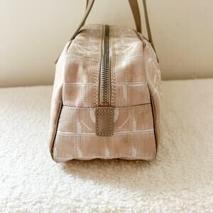 Authentic Chanel Travel Line Beige Canvas and Leather East West Bag.