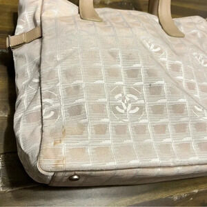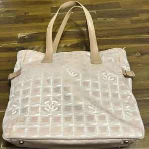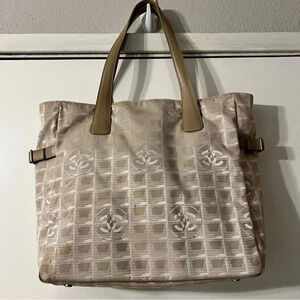 Chanel Travel Line Coco Tote CC Logo Monogram Beige Cream Nylon Vintage