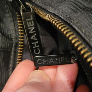 This is a preloved black chanel travel tote. There are signs of wear to handles in particular. No feet on the bag. Inside all clean. All zippers function perfectly. otherwise very good.