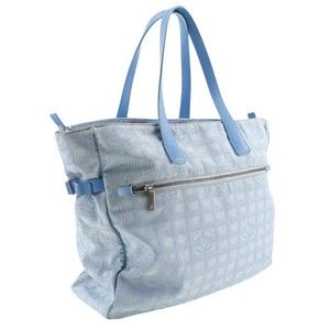 Brand: Chanel Model: Travel line Color: Blue Material: Canvas Inclusions: Serial sticker Dimensions: H 36cm x W 44cm x D 14cm Handle height: 22cm Serial number: 7552706 Country of origin: France Condition: B - good condition. Discover the Chanel Tote TGM from the New Travel Line, a versatile bag designed for women in a charming light blue shade, crafted from durable nylon canvas. The tote features a convenient zipper opening and offers ample storage with a zipper pocket on the outside, along with two open pockets and two zipper pockets inside. The bag includes a serial sticker for authenticity. There are scuffs on the handle, stains on the surface, corner scuffs, and light stains on the interior. We recommend that you look at all the pictures before you make your purchase to make sure you are satisfied with the condition of the item. TBC reference (SKU): 1692380248818711 - H 36cm x W 44cm x D 14cm Handle height: 22cm
