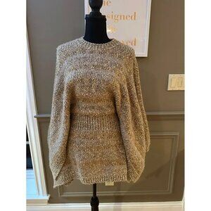 Look 53 from the Fall 2018 Runway presents a Chanel Tunic in neutrals, featuring the iconic Interlocking CC Logo. Designed with long sleeves and a crew neck, this piece highlights a button closure at the front, blending timeless brand identity with a classic, versatile silhouette. This sweater is very stretchy and will work with a waist of 28-34 inch.