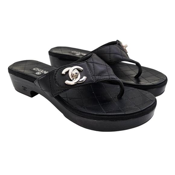 Chanel Turnlock Black Leather Sandals US 8 / EU 38