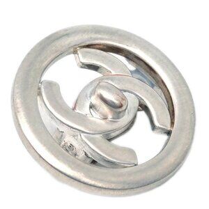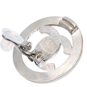 Chanel Turnlock Button Earrings Clip-On Silver 97P