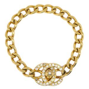 Chanel Turnlock Rhinestone Gold Chain Bracelet 96A 131976