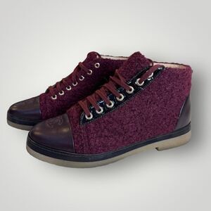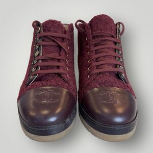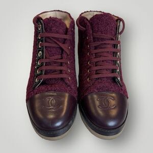 Product: Chanel Tweed & Calfskin Lace Up Booties