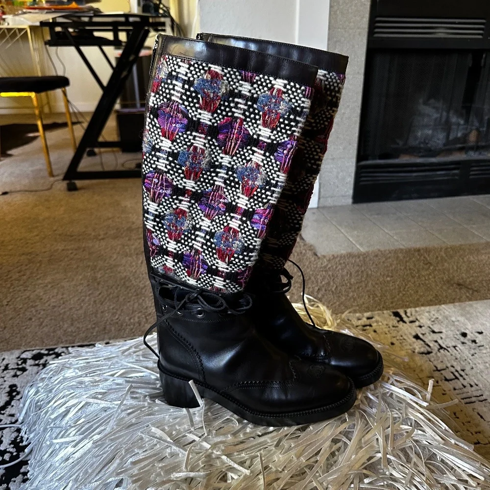 AUTHENTIC CHANEL Tweed Riding boots. Wore 3 times. Excellent condition, no scratches. Size 38.5. No Box