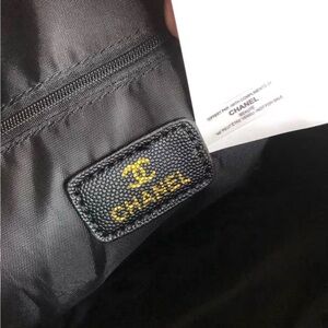 New authentic VIP GWP gift. The material is vegan leather. This backpack is very roomy and stylish. There’s a clear tag inside that says compliments of Chanel.