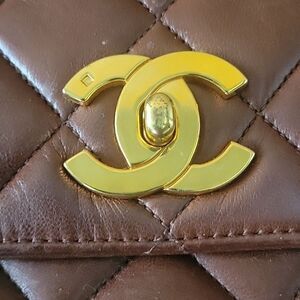 Chanel VTG Brown Lambskin Leather GM Medium Shoulder Flap Camera Bag Rare GHW