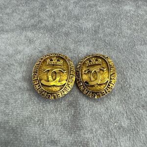 Authentic Chanel Vintage 1980s CC Crown Logo Ornate Oval Goldtone Clip-on Earrings