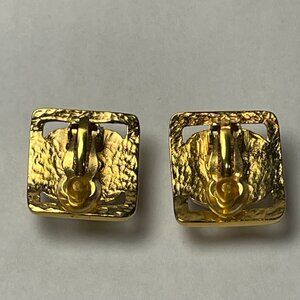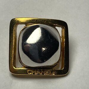 Chanel Vintage 24K Gold Plated and Silver Square Bead Clip-On Earrings- Preowned