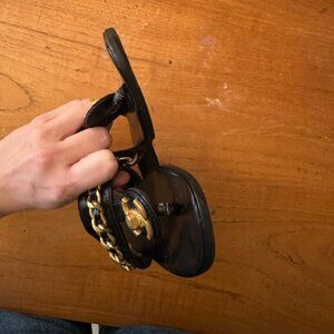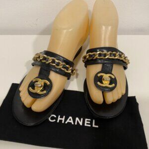 Chanel Vintage 90s CC turn lock chain thong sandals leather