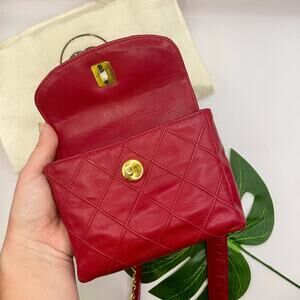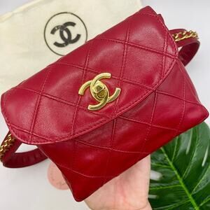 Chanel Vintage 90's Waist Belt Bag Fanny Pack Pouch 24kt Gold Red Lambskin