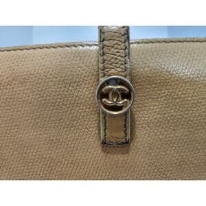 CHANEL Vintage Authentic Button French Purse Logo Wallet Beige Tan Large Bifold