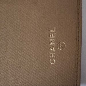 Chanel wallet, vintage Chanel clutch, CC logo wallet, beige leather wallet, Chanel snap closure, Chanel monogram lining, designer wallet, collectible Chanel accessory