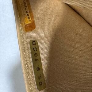 This authentic Chanel vintage beige leather wallet features the iconic CC logo on the snap closure. Crafted from high-quality leather, it includes multiple card slots, a coin compartment, and a spacious interior lined with Chanel monogram fabric. The timeless beige color and elegant design make it a versatile accessory for any wardrobe.