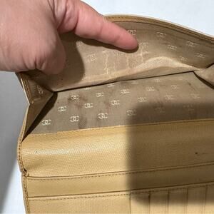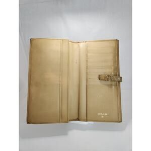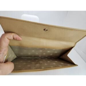 Chanel Vintage Beige Leather Wallet Clutch Authentic CC Logo Snap Closure