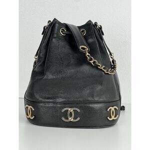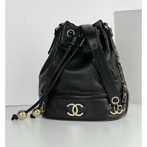 Chanel Vintage Black Caviar Drawstring Shoulder Bucket Bag