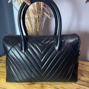 Authentic Vintage Chanel Black Chevron Lambskin Duffel Tote Bag