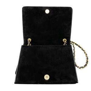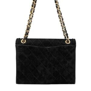 Chanel Vintage Black Quilted Suede Flap Shoulder Bag with Chain Strap – 1990s