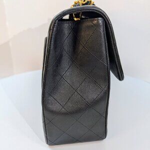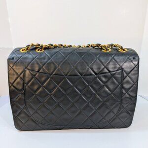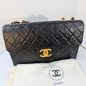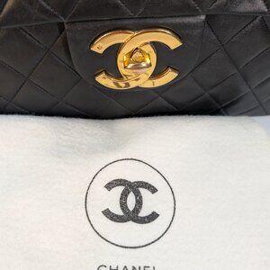 This is a bag for Chanel collectors and lovers. This Classic Vintage Chanel Maxi bag is in VG preloved condition. There are minimal signs of wear: the leather is in good condition, the corners look great and the hardware is very shiny with only superficial scratches. This bag comes with a dust bag.