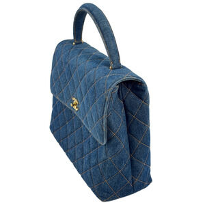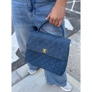 Chanel Vintage Blue Denim Medium Classic Kelly Top Handle Flap Bag w 24K GPHW