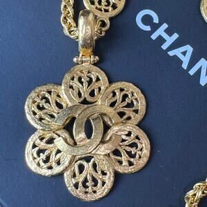 Chanel Vintage CC Filigree Flower Pendant Necklace