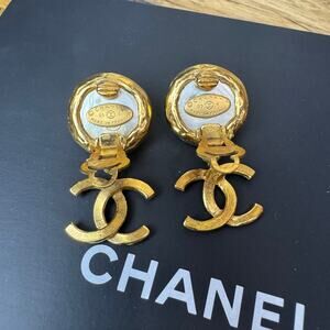 Authentic Chanel Vintage Faux Pearl CC Clip On Earrings