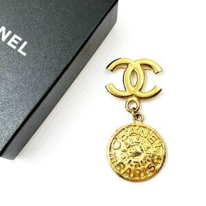 Chanel Vintage Gold Plated CC Medallion Large Brooch