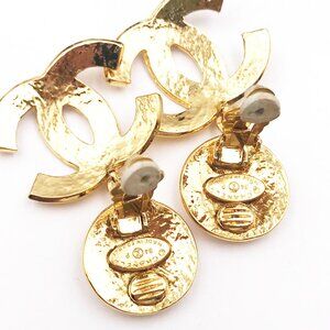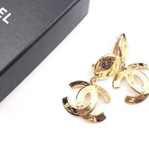 Chanel Vintage Gold Plated Plaid Stitching CC Dangle Clip on Earrings as seen on Pixie Lott