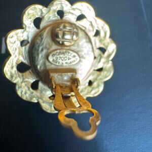 Chanel Vintage Green Gripoix Camellia Flower Clip On Earrings 97P Gold Plated