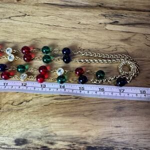 Authentic Chanel Vintage Green Red Blue Gripoix Sautoir Necklace / Belt