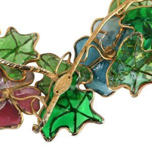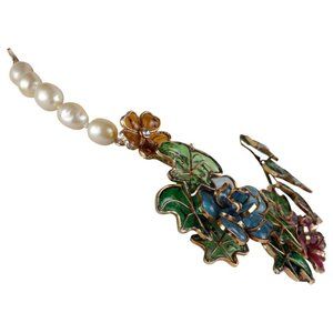 This authentic Chanel Gripoix Flower and Leaf Pearl Choker is in excellent vintage condition from the early 1980’s. Extremely rare and collectible. Large Baroque pearls with colorful Gripoix leaves and flowers in stained glass design. Pouch or box included.
