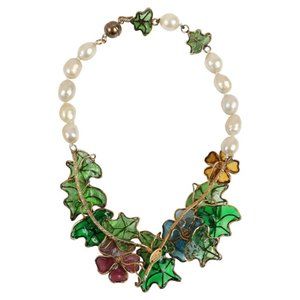 Chanel Vintage Gripoix Flower and Leaf Pearl Choker