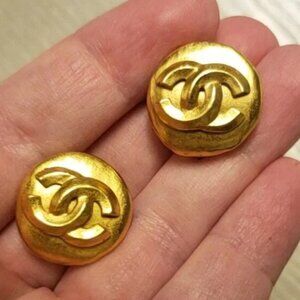 Chanel Vintage Interlocking CC Clip On Earrings 24K Gold-Plated
