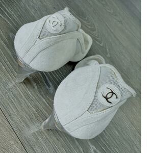 Very rare vintage Chanel CC white mesh knit mules, Made in Italy