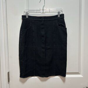 Chanel Vintage Linen Blend Wool Button Front Pencil Skirt Buttons Pocket Small