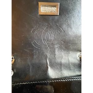 Chanel Vintage Mademoiselle Flap Bag Quilted Canvas Black Patent Small Reissue